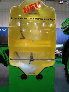 A következÅ‘ újdonság a permetlé tartályban elhelyezkedÅ‘ keverÅ‘ és kimosó rendszer, amely egy vÃzszintesen, hosszában elhelyezkedÅ‘ nyomócsÅ‘, fúvókákkal ellátva. Ez a csÅ‘ a permetlészinttÅ‘l függÅ‘en billegÅ‘ mozgást végez és intenzÃven kever. A tartály kimosása esetén tisztavizes tartályból kap betáplálást és körbeforgó mozgást végez, ezzel mossa ki a gép tartályát.