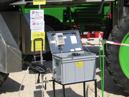A hozzáértÅ‘k felismerték a stand közepén helyet kapó mérÅ‘műszereket. Ezek a permetezÅ‘gépek pontosságát igyekeznek tökéletesÃteni. A Herbst cég által gyártott különbözÅ‘ tÃpusok képesek fúvóka átfolyást, szivattyú teljesÃtményt, kardánfordulatot mérni. Az önjáró, számÃtógéprÅ‘l vezérelt mérÅ‘pad pedig a szántóföldi permetezÅ‘k kereszt irányú szórásegyenletességét vizsgálja, illetve jegyzÅ‘könyvezi. Németországban, és az Unióban többfelé már kötelezÅ‘ 2 évente a szántóföldi permetezÅ‘k bevizsgálása, nálunk is szorgalmazzák ennek bevezetését.
