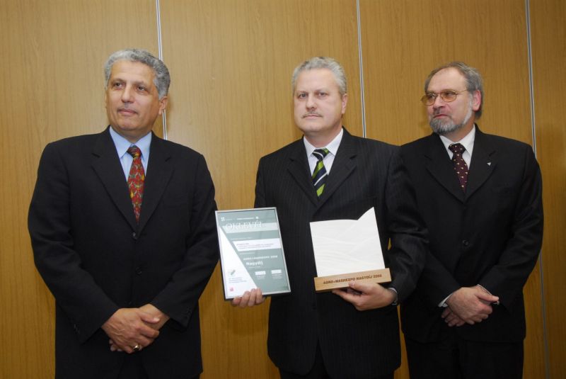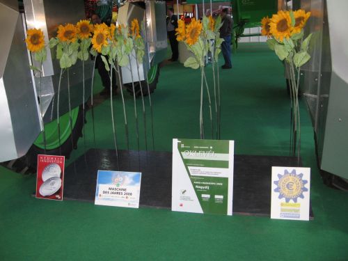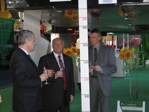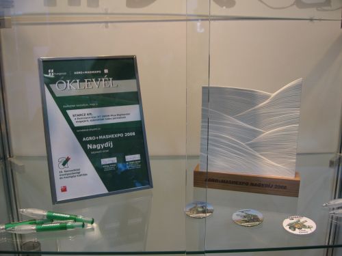 Idén is megrendezésre került az ország legnagyobb mezÅ‘gazdasági szakkiállÃtása. Természetesen a Starcz Agrotechnik Kft. is megjelent a látogatócsúcsot elkönyvelÅ‘ seregszemlén. Mivel a legmagasabb technikai szÃnvonalat képviselÅ‘, és több szakmai elismerést is magáénak tudó gépet terveztünk bemutatni, úgy éreztük, itthon is meg kell versenyeztetnünk. A 2008-as AGRO+MASHEXPO nagydÃjára a szakmai zsűri a benyújtott pályázat alapján érdemesnek talált minket. A gép mely a pályázatban szerepelt, és a megmérettetésbÅ‘l gyÅ‘ztesen került ki, a Dammann-trac DT 2000H Plus Highlander magajáró, szántóföldi hidas permetezÅ‘. Gyártó: Dammann Pflanzenschutztechnik, Fahrzeugtechnik, Airporttechnik GmbH, Németország. Pályázó: Starcz Kft., Szolnok mint forgalmazó. A NagydÃjat és a tanusÃtó Oklevelet ünnepélyes keretek között vette át Starcz Tamás ügyvezetÅ‘. A kiállÃtás ideje alatt a gyÅ‘ztes technikát megtekintette Gráf József Földművelésügyi és Vidékfejlesztési miniszter, valamint GÅ‘gös Zoltán államtitkár. A képen jól látható, hogy a gyÅ‘zelmi pezsgÅ‘ elfogyasztására "a döbbenetes szabad magassága miatt" a gép alatt kerülhetett sor.