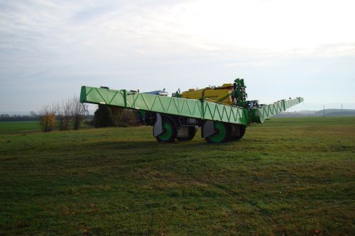 A DCD a hidraulikát és a pneumatikát kombinálva használja a keretszárnyak vezérléséhez. A hidraulika a keretet gyorsan a monitoron beállÃtott munkamagasságba állÃtja, a pneumatika pedig a keretszárnyak finom beállÃtását, talajfelszÃn követését szabályozza. A keretszárnyak magasságát két-két ultrahang szenzor és egy szögkitérést érzékelÅ‘ ellenÅ‘rzi, egy giroszkóp pedig érzékeli a kanyardinamikát, és ezen értékek alapján szabályozza a keret talajkövetését. Kapásnövényeknél (kukorica, napraforgó) célszerű további két szenzort felszerelni, ezzel ki tudjuk zárni azt a hibalehetÅ‘séget, hogy esetlegesen valamelyik szenzor a növény sora közé lásson be, és ahhoz tévesen szabályozzon. Ebben az esetben a keretre hat szenzor lesz felszerelve. Néhány gombnyomással ki lehet választani a kÃvánt üzemmódot, és az értékek mindig módosÃthatók. A szórókeret munka- és forgón való kiemelési magassága centiméter pontossággal beállÃtható a fülkében található terminálon.
